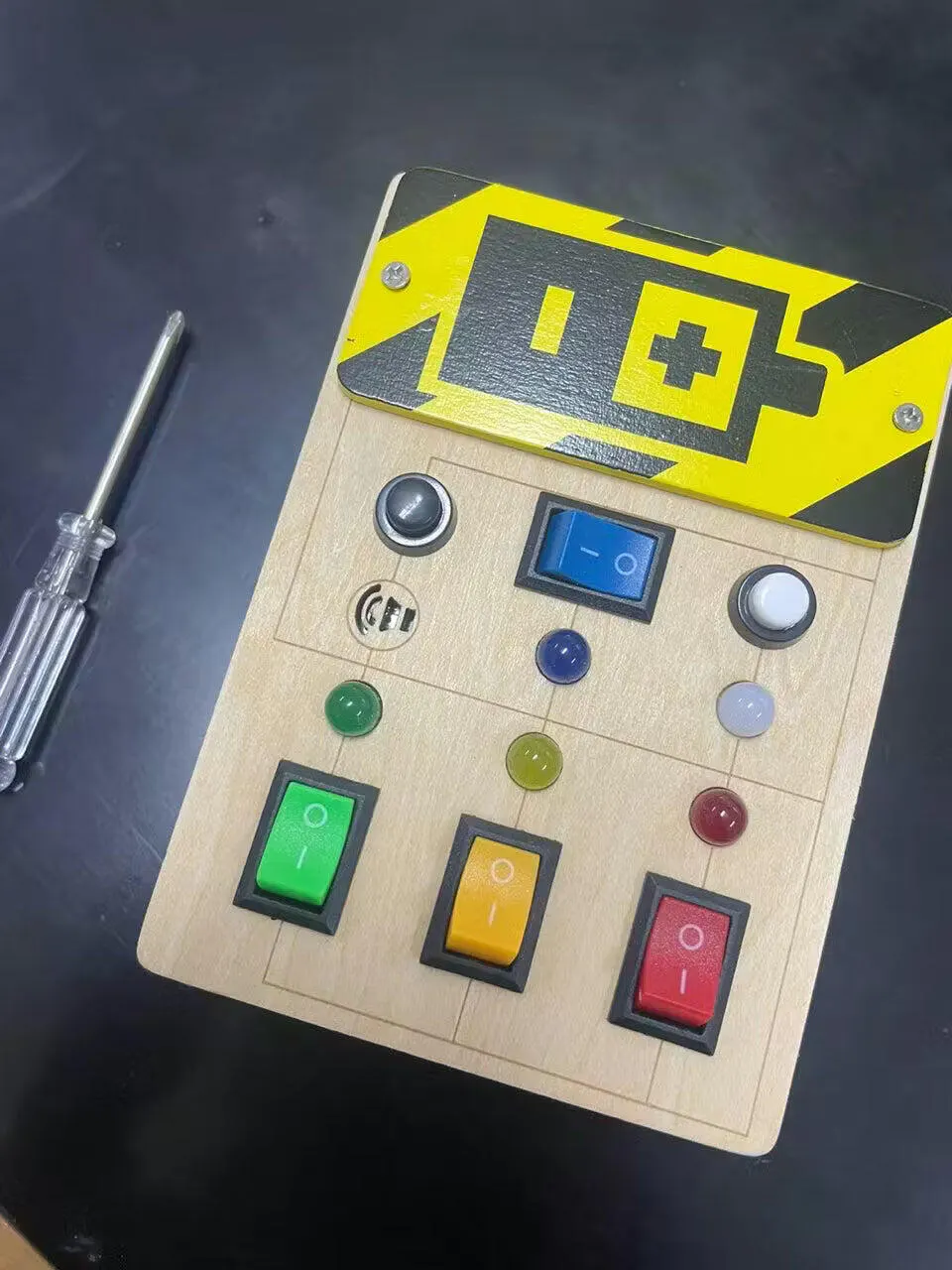 匿名 ビジーボードの色と形が魅力的で、子供たちが興味津々で遊んでいます。手先を使う遊びが楽しいです。